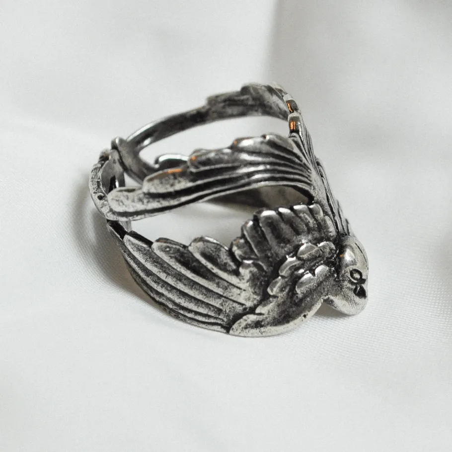 BAGUE HIRONDELLE- Bague argentée , patinée- Bague ajustable- Sans Nickel- Livré avec une pochette tissée main