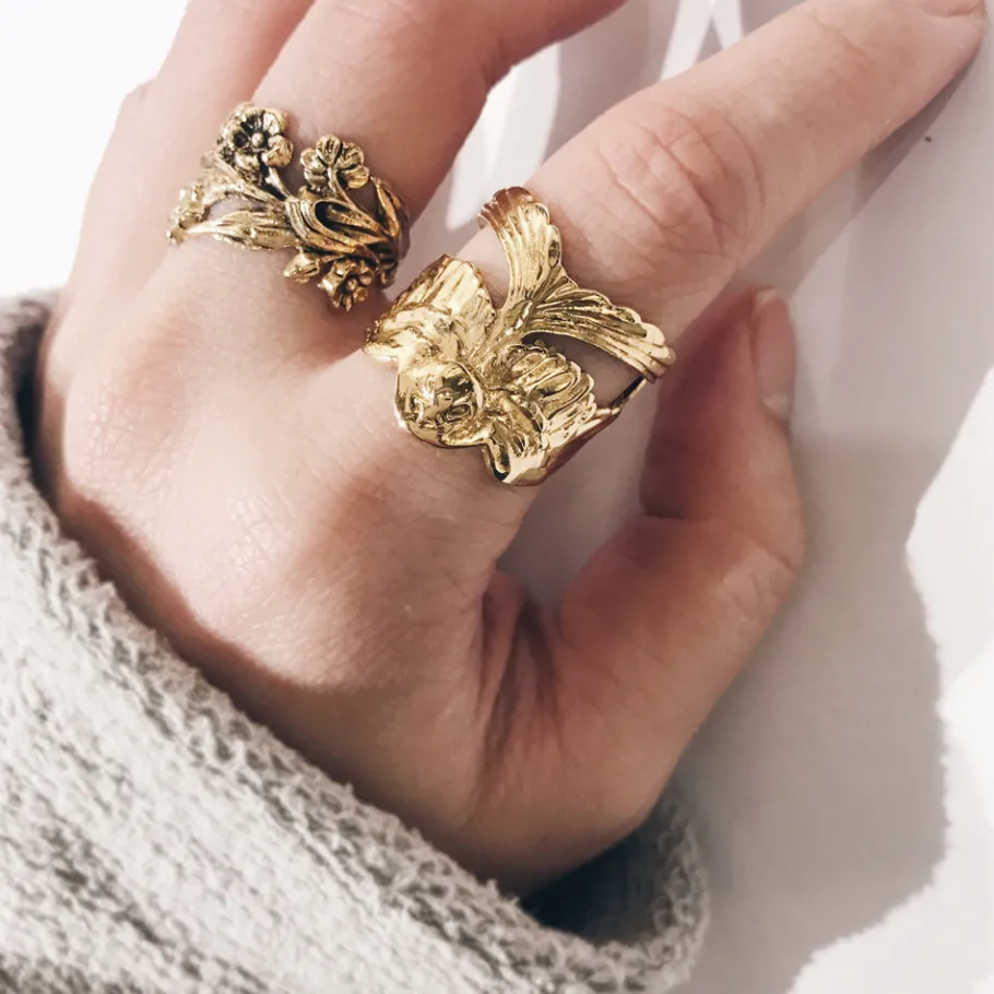 Bague Hirondelle Dorée- Bague dorée or fin, patinée- Bague ajustable- Sans Nickel- Livré avec une pochette tissée m…