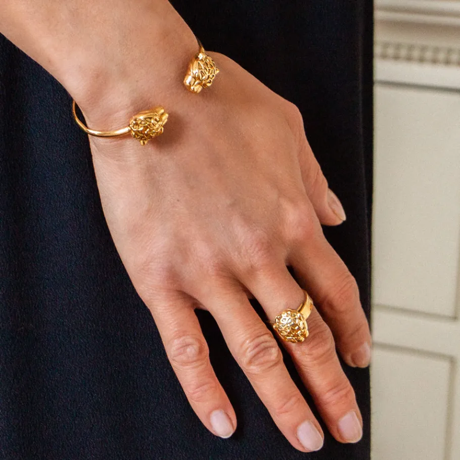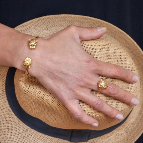 Bague Mini Panthère Dorée- Bague en laiton dorée or fin, patinée- Bague ajustable- Sans Nickel- Livré avec une poch…