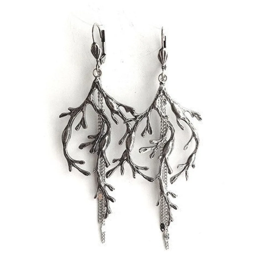 BOUCLES D’OREILLES ALGUE- Boucles d’oreilles argentées , patinées- Sans nickel- Inoxydable- Livré avec une pochette t…