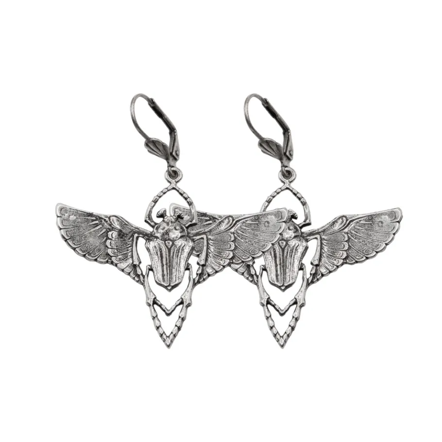 Boucles d’oreilles Beetle- Boucles d’oreilles argentées , patinées- Inoxydable- Sans Nickel- Livré avec une pochette …