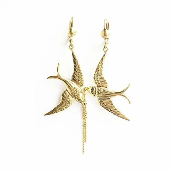 BOUCLES D’OREILLES BIRD- Boucles d’oreilles dorées or fin, patinées- Inoxydable- Sans Nickel- Livré avec une pochette…