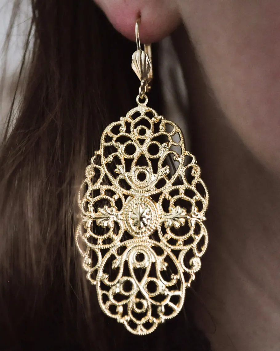 Boucles d’oreilles Dentelle New Dorées- Boucles d’oreilles en laiton dorées or fin- Inoxydable- Sans Nickel- Livré av…