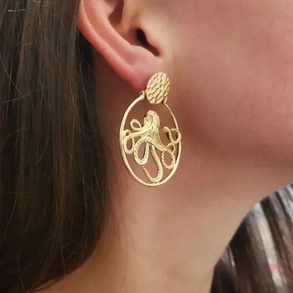 Découvrir nos nouvelles boucles d’oreilles aux puces avec motif poulpe de notre collection inspirée d’animales majestueuses.