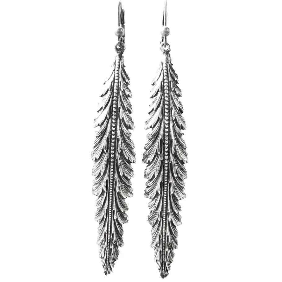 Boucles d’Oreilles Plume Coco Argentées- Boucles d’oreilles argentées , patinées- Inoxydable- Sans Nickel- Livré ave…