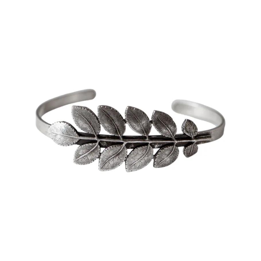 Bracelet Jonc Petit Feuille d’Acacia Argenté- Bracelet en laiton argenté, patiné- Bracelet ajustable- Sans Nickel- …