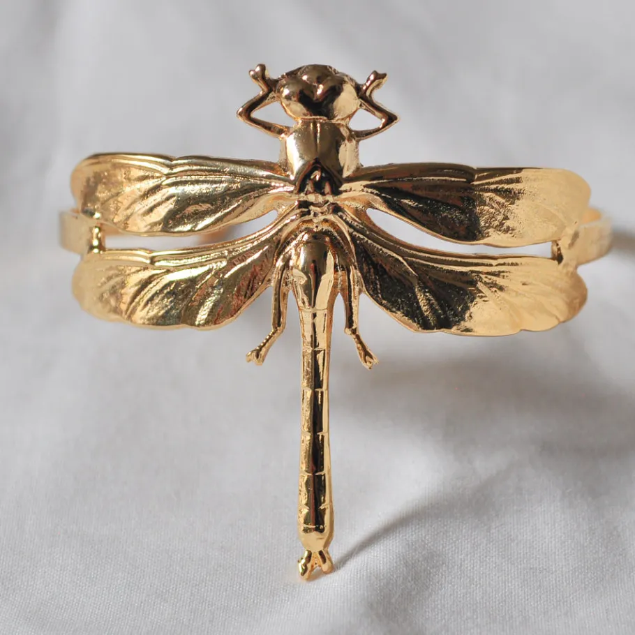 Bracelet Libellule Doré- Bracelet doré or fin, patiné- Bracelet ajustable- Sans Nickel- Livré avec une pochette tiss…
