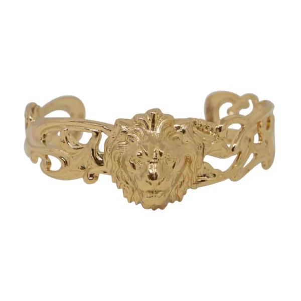 Bracelet Lion Doré- Bracelet doré or fin, patiné- Bracelet ajustable- Sans Nickel- Livré avec une pochette tissée m…