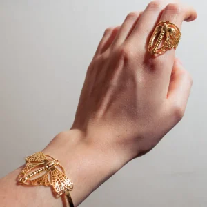Découvrir notre nouveau bracelet avec une petite libellule volant doré