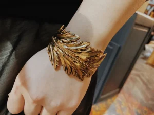 – Bracelet en laiton doré or fin, patiné- Bracelet ajustable- Sans Nickel- Livré avec une pochette tissée main