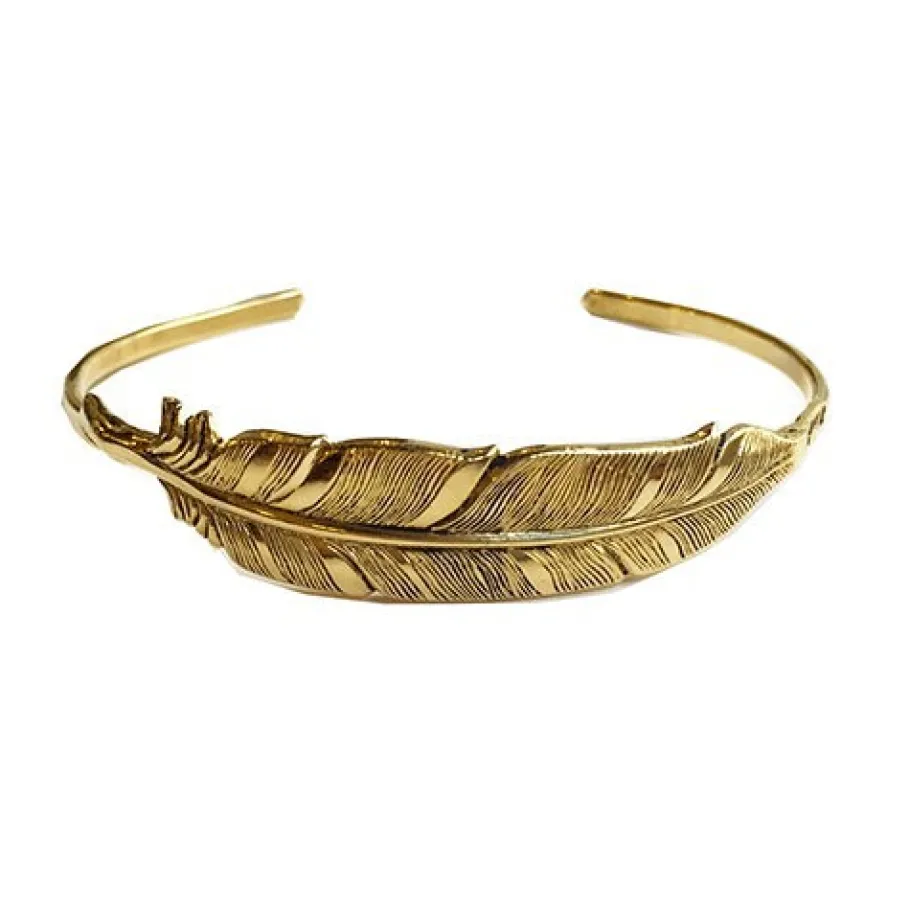 BRACELET PLUME- Bracelet doré or fin, patiné- Bracelet ajustable- Sans Nickel- Livré avec une pochette tissée main