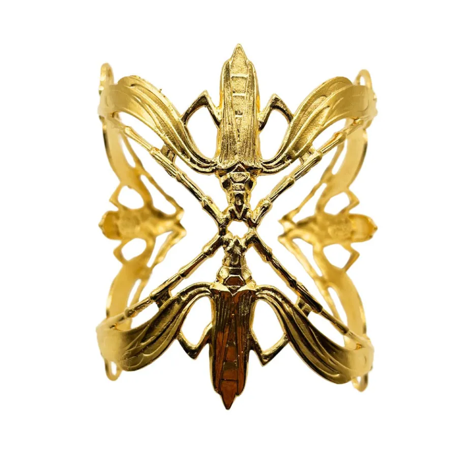Bracelet manchette Scarabée Ailé dorée- Manchette dorée or fin- Bracelet ajustable- Sans Nickel- Livré avec une poc…