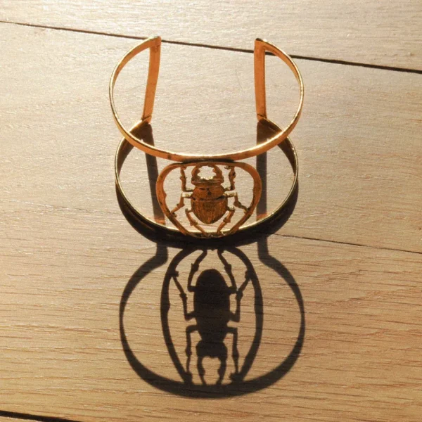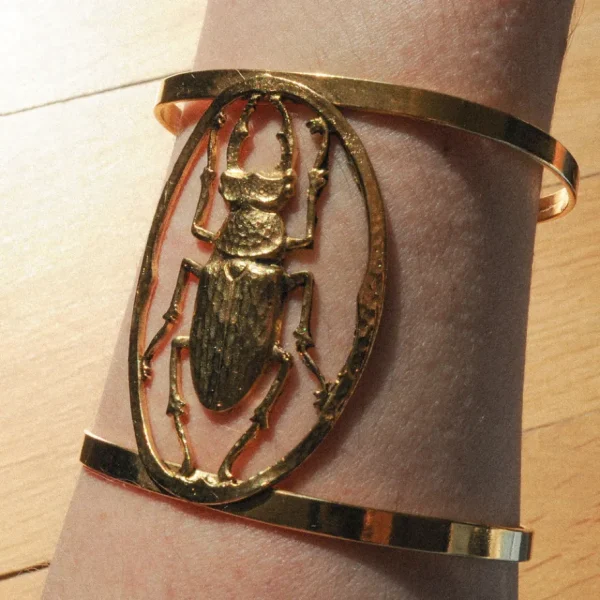 Coléoptère, le scarabée est sacré et mythique dans diverses cultures. Montée sur un anneau ajustable, le bracelet scarabée doré est léger, agréable et élégant à votre poignet.
