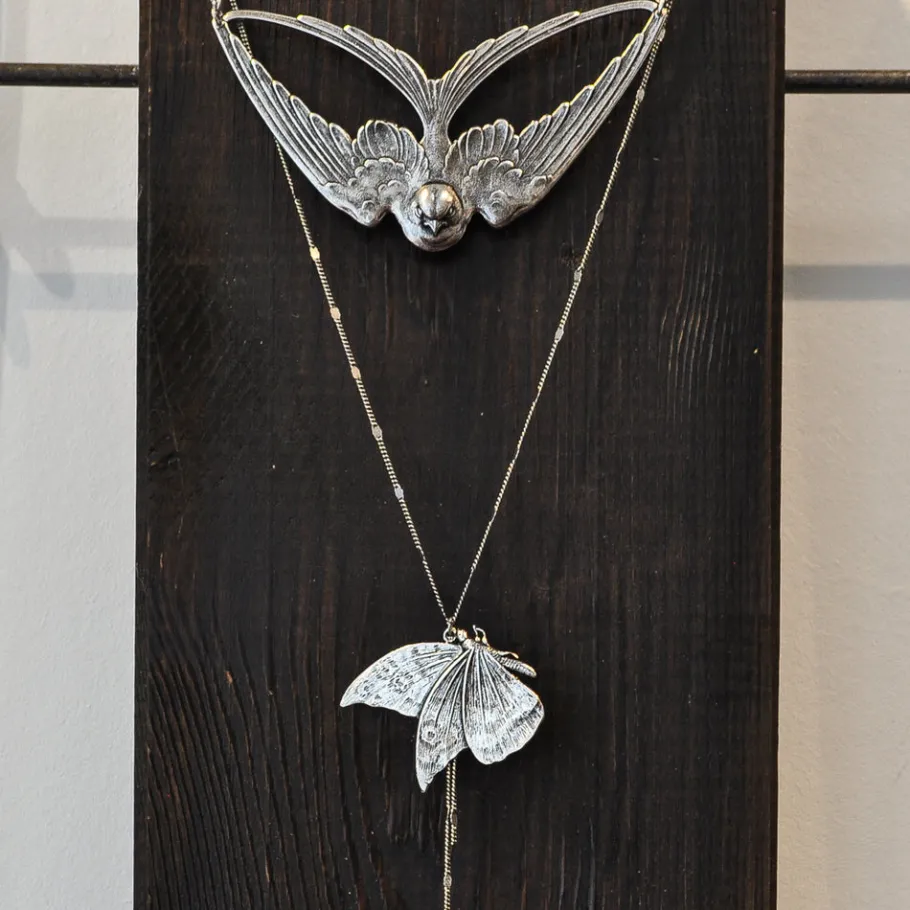 – Collier argenté, patiné- Longueur: 70cm- Inoxydable- Sans Nickel- Livré avec une pochette tissée main