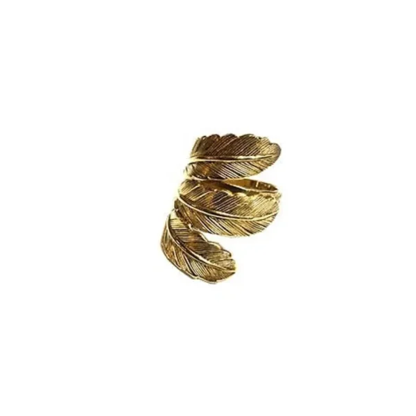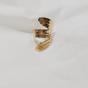 Bague 3 Plumes Dorée- Bague dorée or fin et patinée – Bague ajustable- Sans Nickel- Livré avec une pochette tissée…