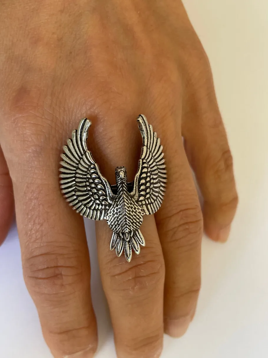 Ce bijou en forme d’aigle, symbole de la force est argenté. Réglable, bague mixte, elle sera s’ajuster parfaitement à vos doigts
