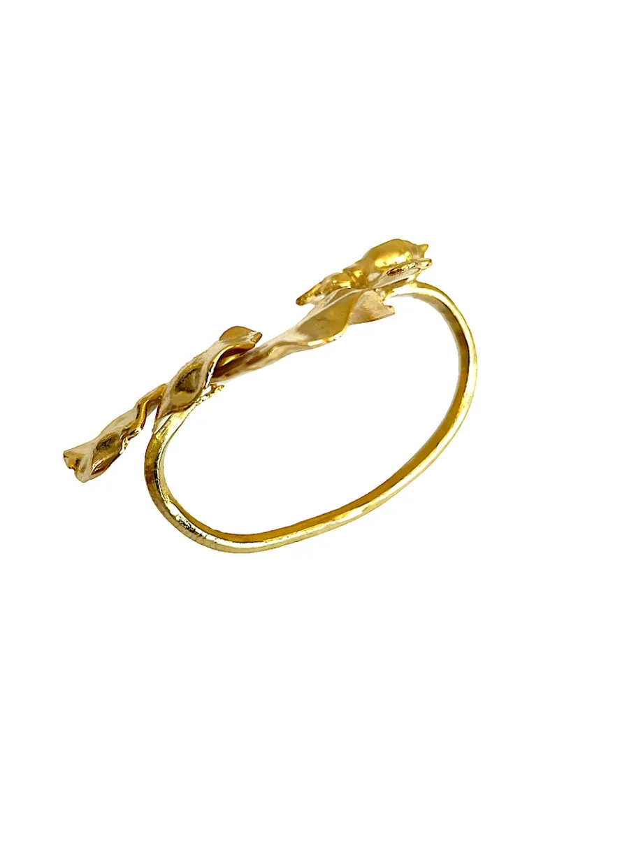 Bague avec grande fleur et abeille « Pensée Bee Dorée » pour deux doigts