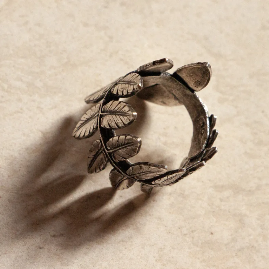 Bague Fougère Argentée- Bague en laiton argentée et patinée – Bague ajustable – Sans Nickel – Li…