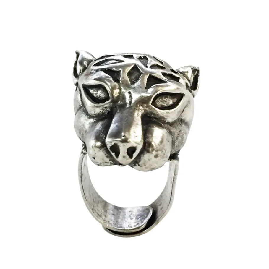 Bague Grande Tête de Panthère – Bague argentée, patinée – Bague ajustable – Sans Nickel – Livré a…