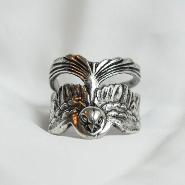 BAGUE HIRONDELLE- Bague argentée , patinée- Bague ajustable- Sans Nickel- Livré avec une pochette tissée main
