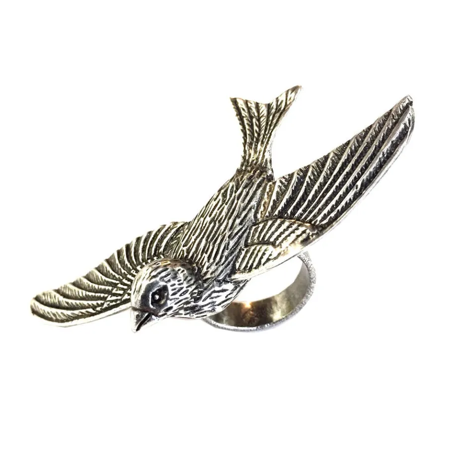 – Bague oiseau envol argentée, patinée