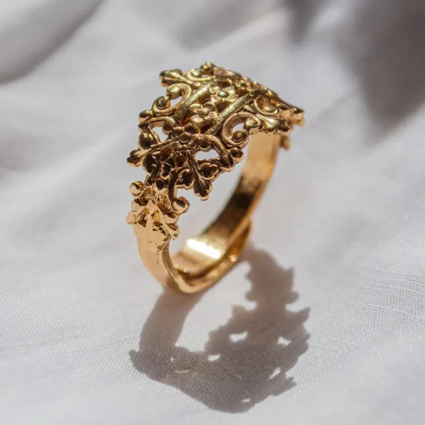 Bague Little Baroque Dorée- Bague style baroque dorée à l’or fin et patinée- Bague ajustable- Sans Nickel- Livré av…