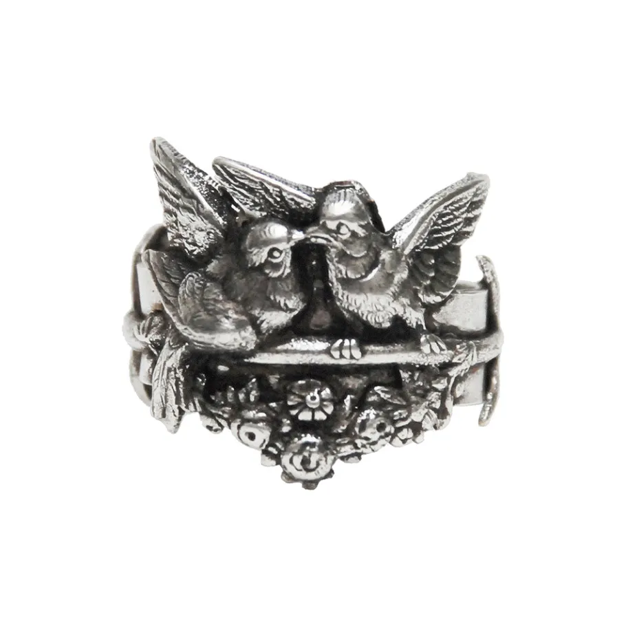 Bague Love Birds- Bague en laiton argentée, patinée-Bague ajustable- Sans Nickel- Livré avec une pochette tissée mai…