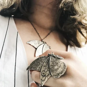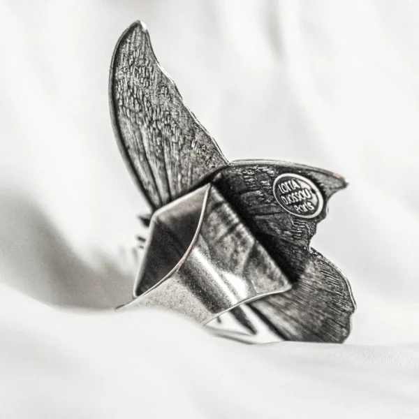 Bague Papillon Macey- Bague argentée, patinée- Bague ajustable- Sans Nickel- Livré avec une pochette tissée main