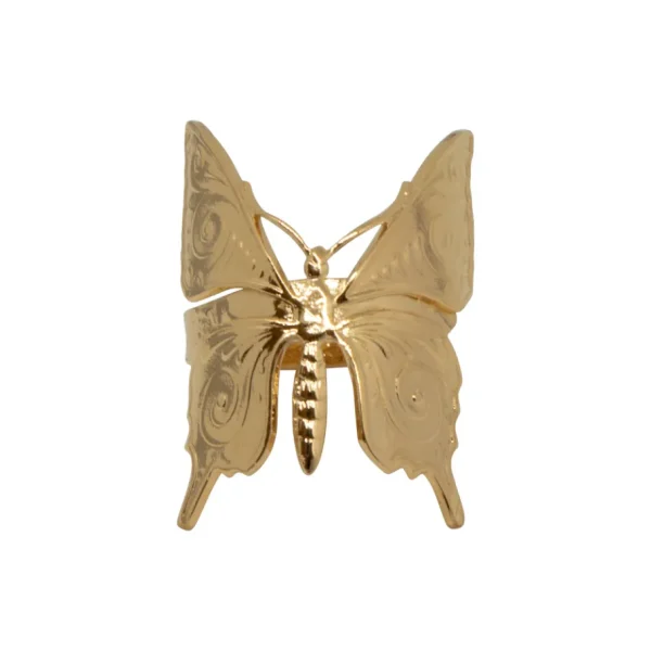 Bague Papillon Dorée- Bague dorée or fin, patinée- Bague ajustable- Sans Nickel- Livré avec une pochette tissée ma…