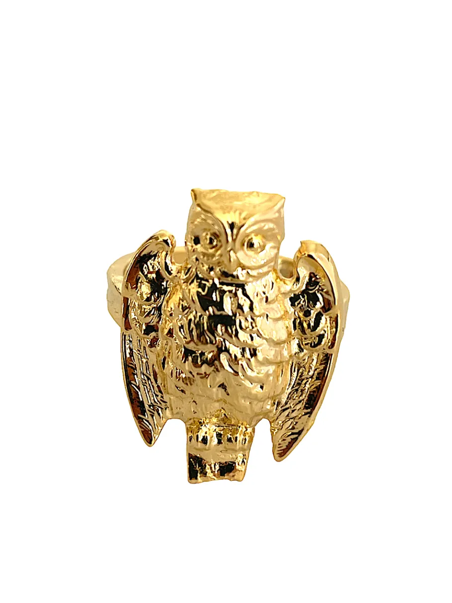 Bague petit hibou dorée à l’or fin. Bague mixte pour femme et homme par sa taille ajustable. Celle-ci sera belle et légère à votre doigt, tout en donnant du caractère à votre tenue.