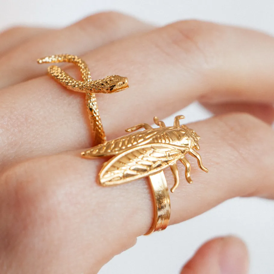 Bague Cigale Cica DoréeDans la famille des insectes la cigale est signe de bon présage. Un vrai porte-bonheur, elle pr…