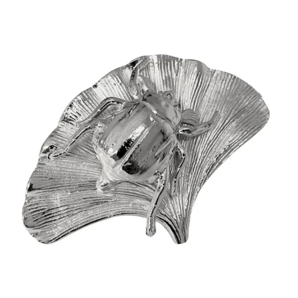 Cette grande bague audacieuse en forme de feuille de ginkgo est une ode à la nature et aux scarabées.