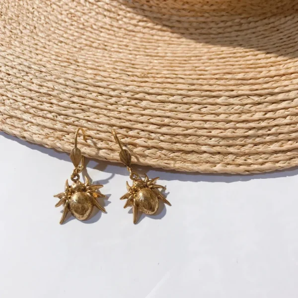 Boucles d’oreilles Arakné Dorées- Boucles d’oreilles dorées or fin, patinées- Pierres: Onyx- Inoxydable- Sans Nickel…