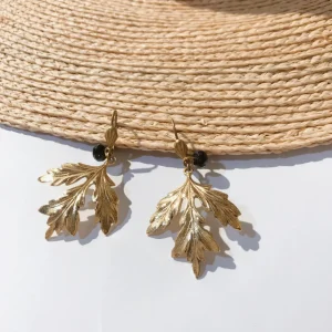 Boucles d’Oreilles Ella Dorées- Boucles d’oreilles dorées or fin, patinées- Pierres: Onyx- Inoxydable- Sans Nickel- L…