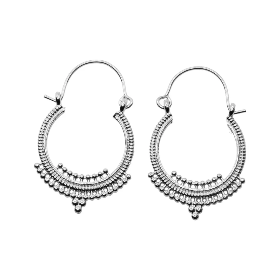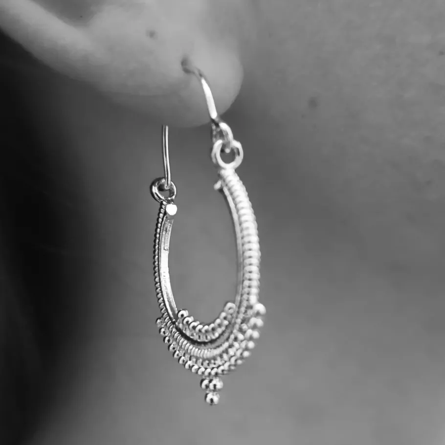 Découvrir notre nouvelle collection des boucles d’oreilles créoles avec motif filigrane Indienne argentée.
