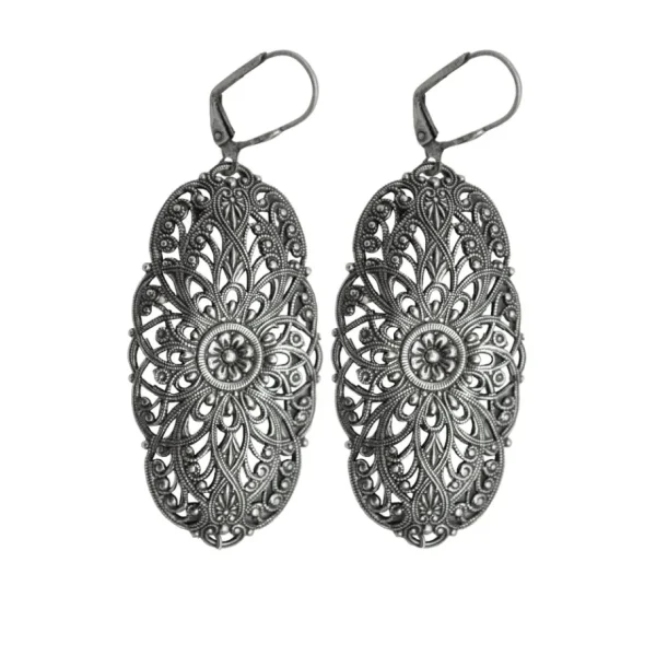 Boucles d’Oreilles Filigrane Mandala- Boucles d’oreilles en laiton argenté, patinées- Pierre fine : Onyx- Sans Nickel-…