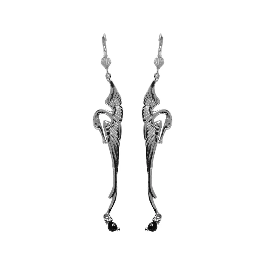 Boucles d’Oreilles Héron- Boucles d’oreilles argentées , patinées- Inoxydable- Sans Nickel- Livré avec une pochette …