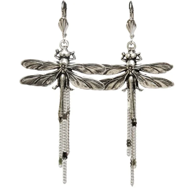 BOUCLES D’OREILLES LIBELLULE- Boucles d’oreilles argentées , patinées- Sans nickel- Inoxydable- Livré avec une pochet…