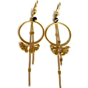 – Boucles d’oreilles doré or fin, patinées- Inoxydable- Sans Nickel- Livré avec une pochette tissée main