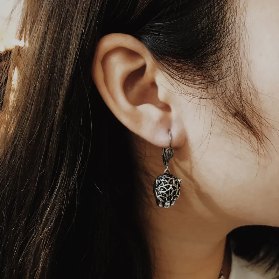 Boucles d’oreilles Mini Panthère- Boucles d’oreilles argentées , patinées- Inoxydable- Sans Nickel- Livré avec une p…
