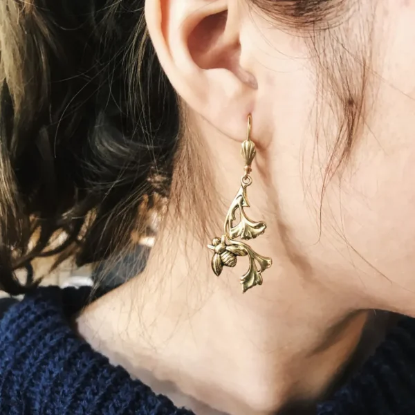 – Boucles d’oreilles dorées or fin, patinées