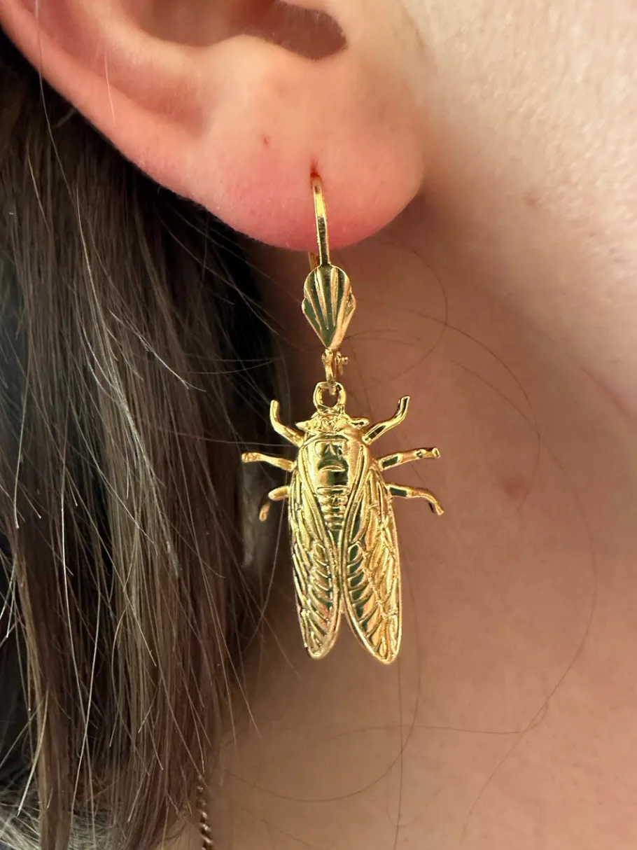 Dans la famille des insectes la cigale est vrai porte-bonheur. Ces boucles d’oreilles cigale dorées à l’or fin, ne vous quitteront plus.