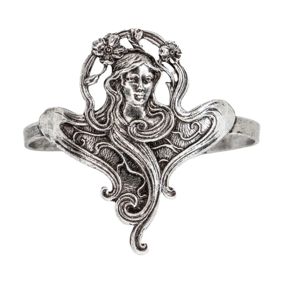 Bracelet Camée- Bracelet argenté, patiné- Bracelet ajustable- Sans Nickel- Livré avec une pochette tissée main