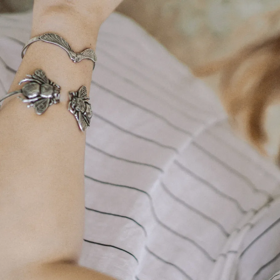 BRACELET DOUBLE BEE- Bijoux argenté et vieilli – Bracelet ajustable- Sans Nickel – Livré avec une po…