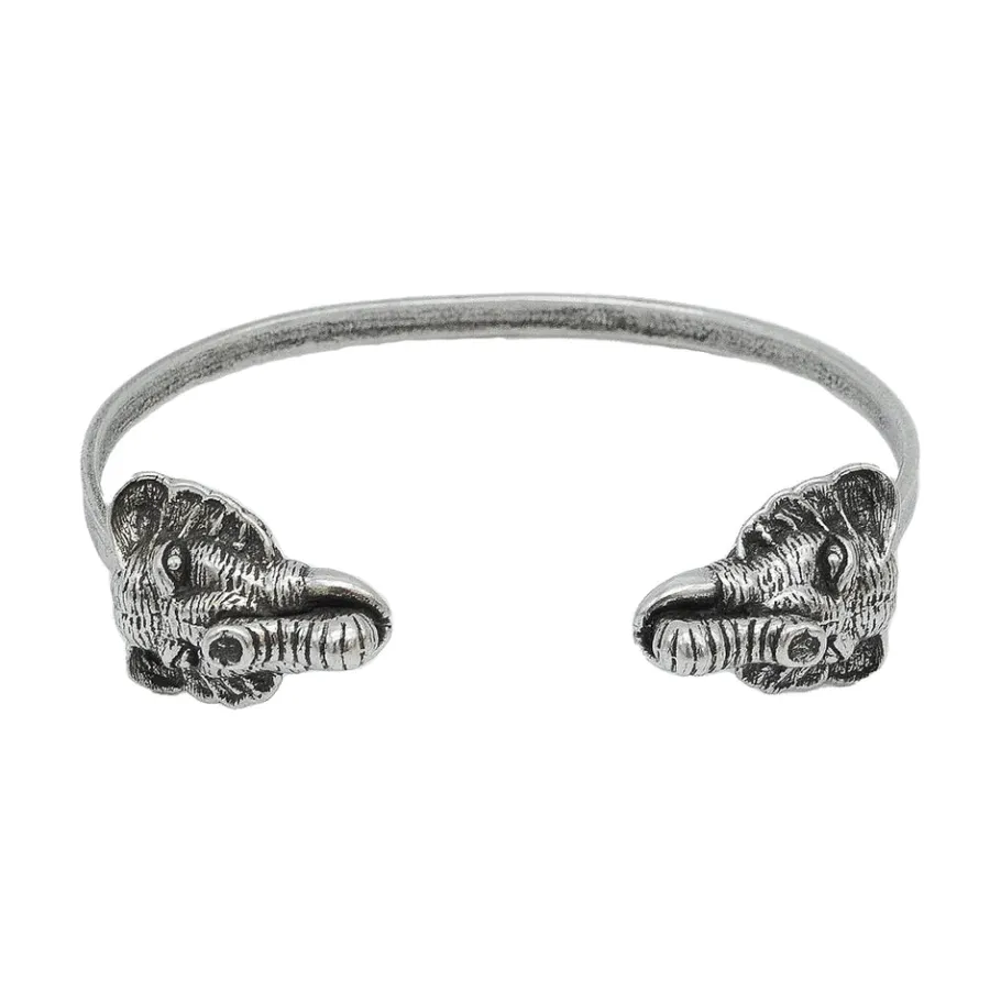 Bracelet Double Éléphant- Bracelet argenté, patiné- Bracelet ajustable- Sans Nickel- Livré avec une pochette tissé…