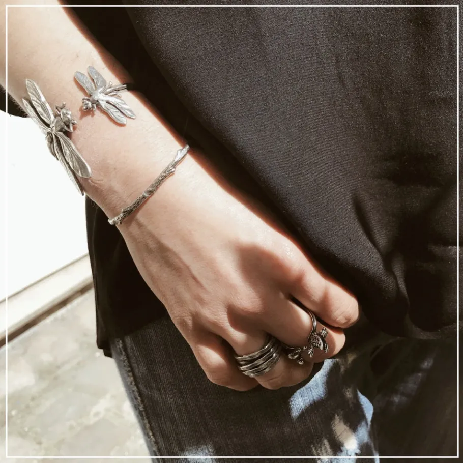 BRACELET DOUBLE LIBELLULE- Bijoux argenté et vieilli – Bracelet ajustable- Sans Nickel – Livré avec …