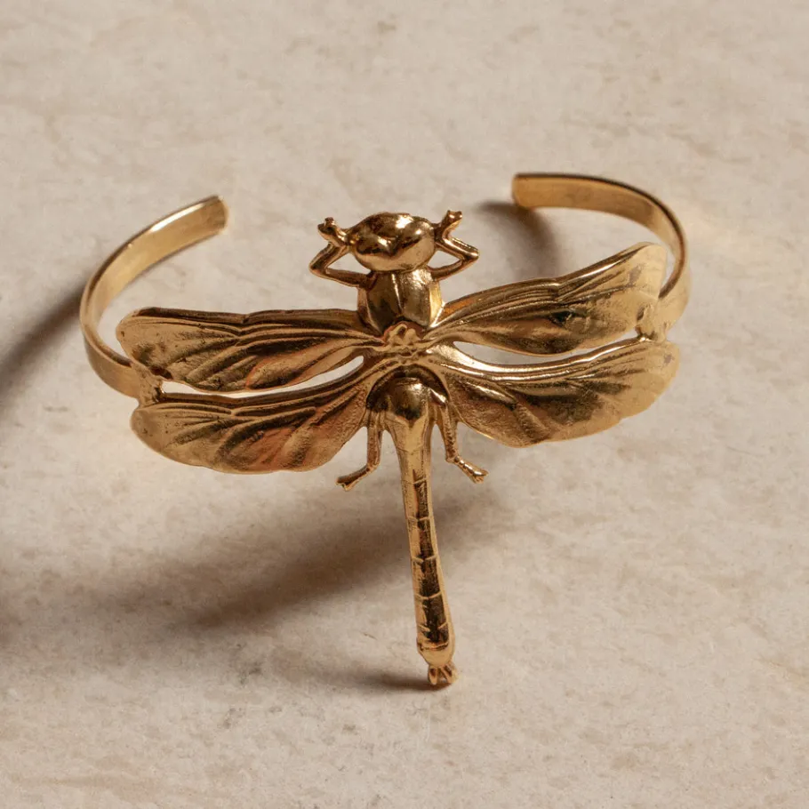 Bracelet Libellule Doré- Bracelet doré or fin, patiné- Bracelet ajustable- Sans Nickel- Livré avec une pochette tiss…