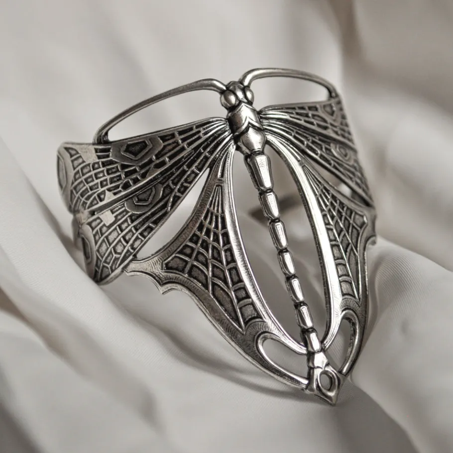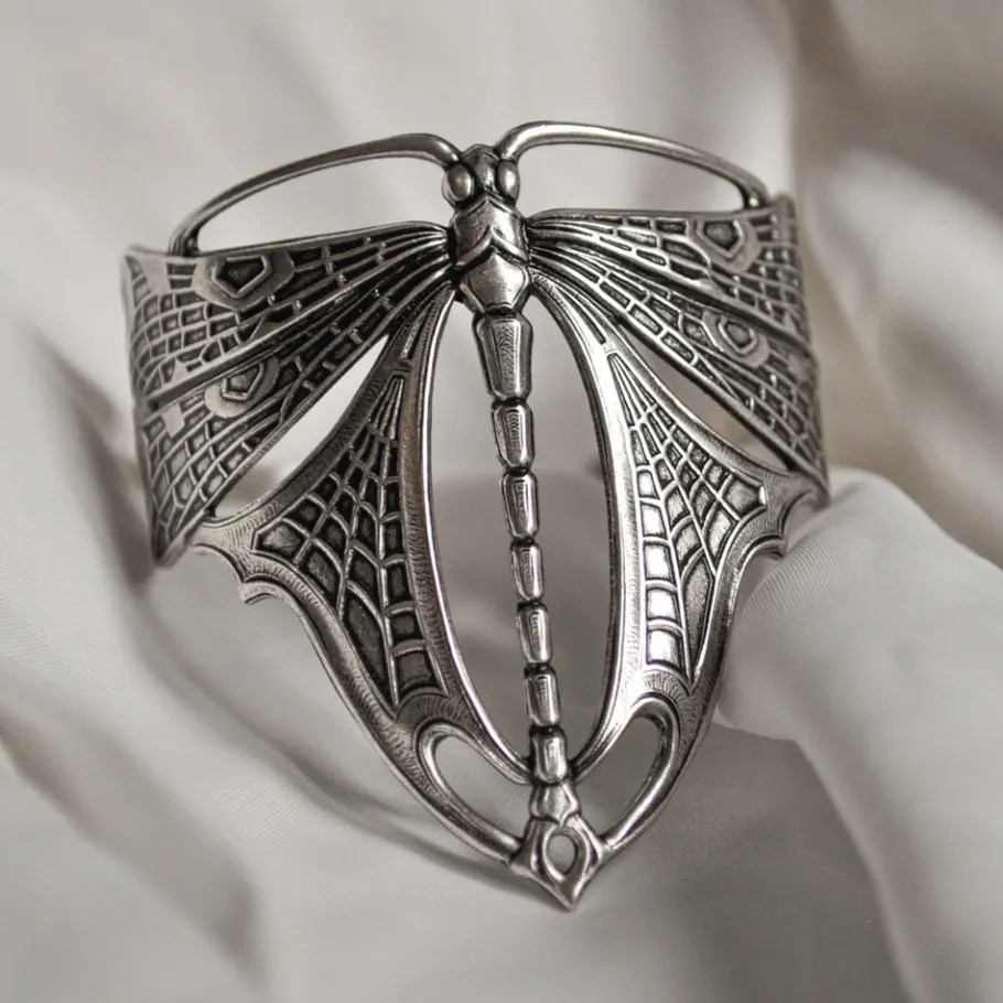 Bracelet Libellule Volant Argenté- Bracelet argenté, patiné- Existe en plaqué or fin, patiné- Bracelet ajustable- S…