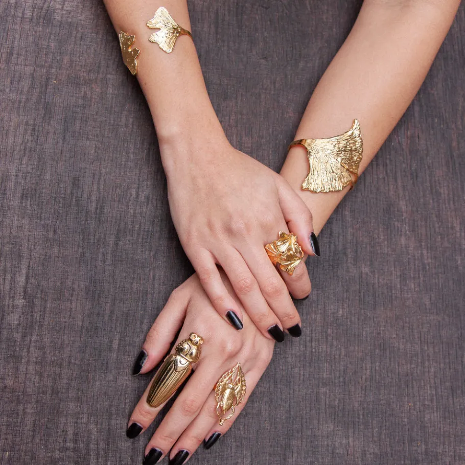 Bracelet Petite Feuille de Ginkgo Doré- Bracelet doré or fin, patiné- Bracelet ajustable- Sans Nickel- Livré avec…