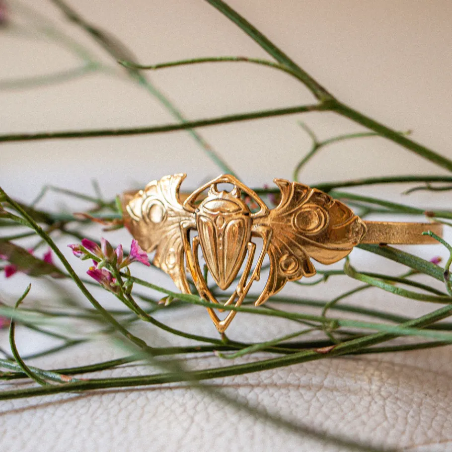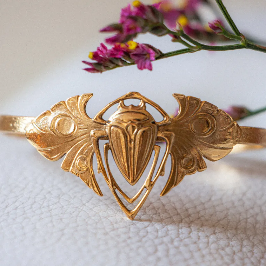 Bracelet Scarabée Doré- Bracelet doré or fin, patiné- Bracelet ajustable- Sans Nickel- Livré avec une pochette tiss…